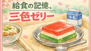 京都生協で販売中の給食デザート「三色ゼリー」。ひな祭りに登場した菱形三色ゼリーが、なぜ今も記憶に残るのかを考察します。懐かしい給食の思い出を振り返る大人向けエッセイ。