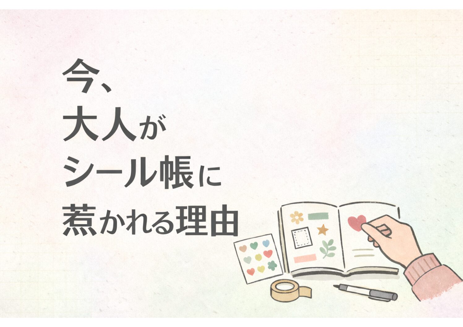 シール帳ブーム世代ど真ん中なのに、子どもの頃はやっていなかった筆者。YouTubeをきっかけに気づいた、正解を探さず「好き」を信じて貼るシール帳の魅力と、今大人が惹かれる理由を綴ります。